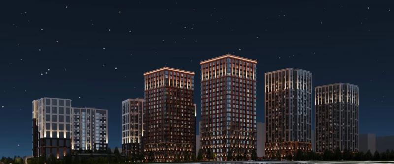 Вечерняя подсветка подчеркнет ступенчатый рисунок на фасаде и выделит центр квартала.