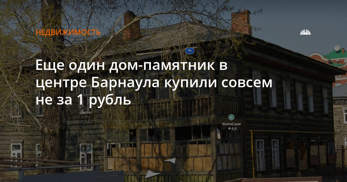 «Вторполимер» выиграл второй лот – дом-памятник в 385 кв. м, который построили в 1915 году. Образец деревянного городского жилого дома начала 20 века с бревенчатыми стенами и эффектной верандой с побитыми окнами.