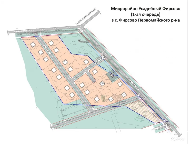 "Усадебный Фирсово" находится в границах улиц Российская, Славная и Заречная. Продавец сообщает, что в поселок можно попасть через само село Фирсово или повернув с Правобережного тракта. К новым участкам подведены газ, свет, вода, устроено освещение улиц.