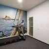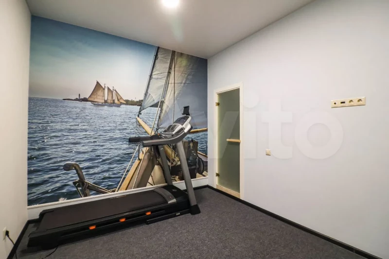 Цоколь дома занимает комната для игры в бильярд, кладовка с подвальным отсеком, прачечная, помещение для хранения вещей, комната с беговой дорожкой и парной. Первый этаж занимают холл, жилая зона хозяина, столовая с кухонной частью, просторная гостиная с камином и спальная комната с личной ванной. Второй отведен двум детским помещениям с отдельными ваннами и рабочему кабинету.