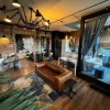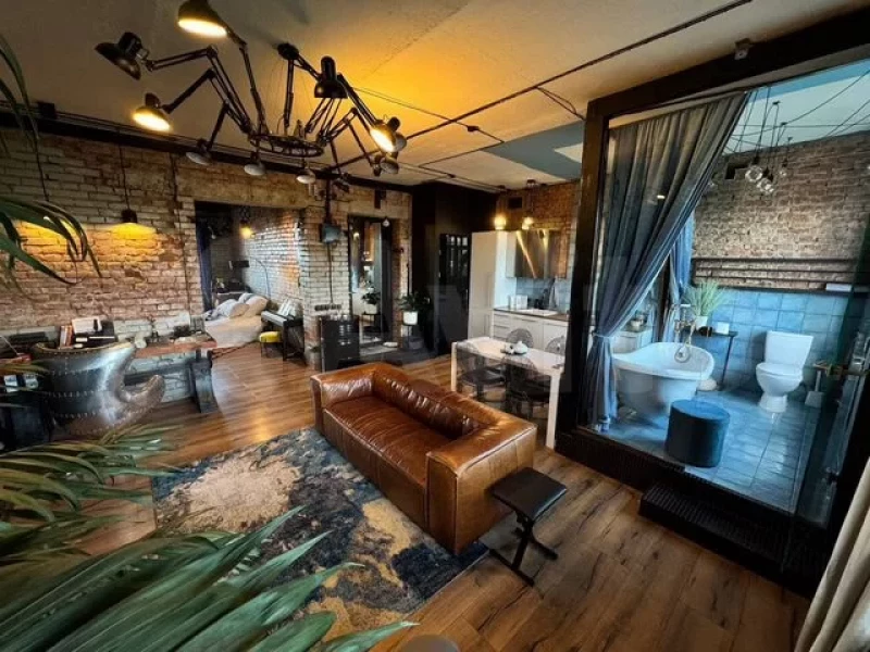 В квартире есть шумоизоляция. Во дворах всегда есть свободное место для парковки, все, что нужно для жизни, в пешей доступности. Также есть золотые краны, ванная комната в окне и большой камин на биотопливе — автор называет его «живым огнем».
