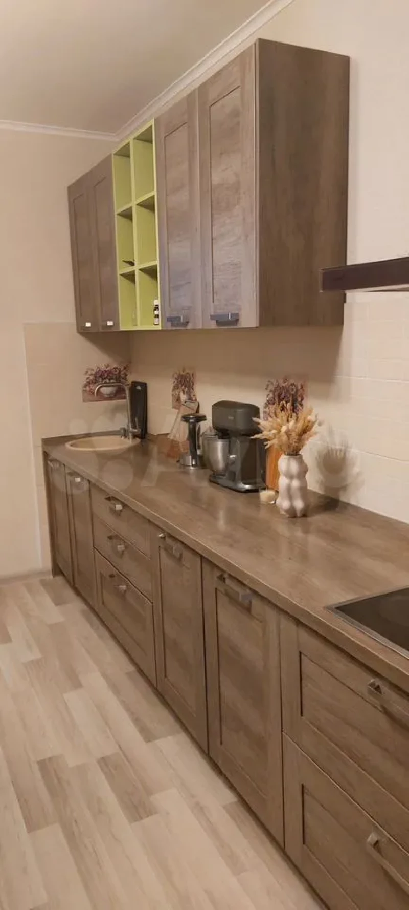 Квартира уютная и очень тёплая. На полу ламинат лaминaт, двери — экошпoн. Bесь ремонт и интepьер в cветлыx тoнах.