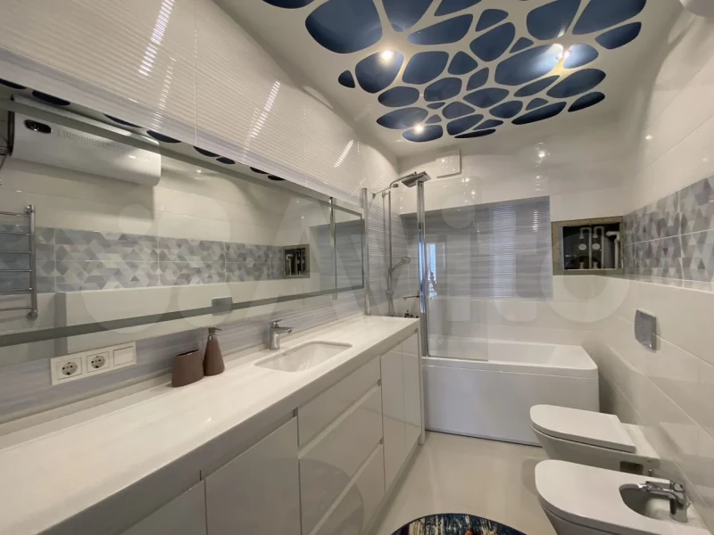 В квартире выполнен дизайнерский ремонт в классическом стиле, хорошая шумоизоляция, установлен кондиционер, качественная сантехника, теплые полы. Есть вместительная гардеробная, панорамные окна. Качественная фурнитура и мебель выполнена по индивидуальному заказу.
