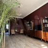 Кухня маленькая, всего 9 кв. м, но оборудована всей необходимой бытовой техникой. В квартире раздельный санузел. Просторная гостиная с большими окнами, в комнате очень светло несмотря на темные стены. Подойдет для художников, дизайнеров, швей и книжных червей.