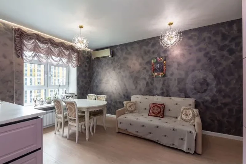 В распоряжении владельца удобная кухня-гостиная, включающая современную мебель и полный набор бытовой техники. Оборудованная лоджия готова стать кабинетом или местом релаксации. Кроме того, есть просторная кухня нежно-розового цвета с интересными люстрами в форме одуванчиков.