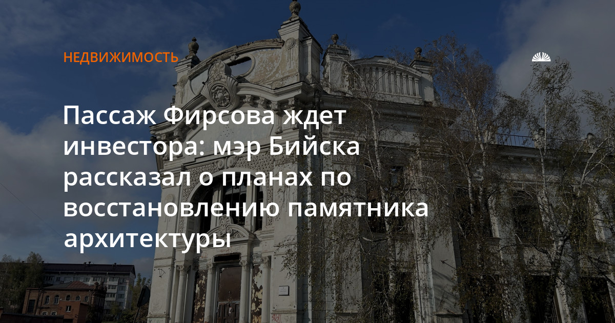 Ранее сообщалось, что Пассаж Фирсова в Бийске планировали отдать под приватизацию.