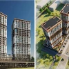 Проект подготовила студия архитектора Владимира Золотова вместе с фирмой «Векстрой». Два нижних этажа отведут под коммерческие помещения, комплекс предложит жильцам 254 квартиры, террасные пространства и подземную парковку на два уровня.