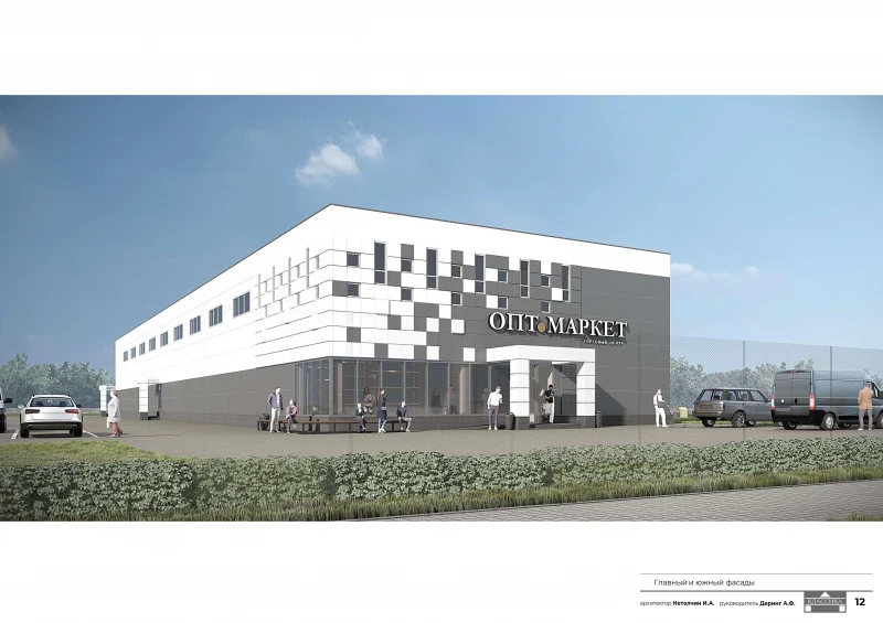 Эскиз разработала мастерская архитектора Александра Деринга «Классика». Каркас здания в виде сэндвич-панелей из железобетона. Внутри будет большое торговое помещение и несколько административных.
