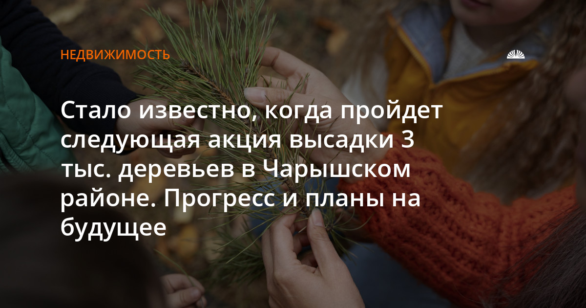 Теми, кто высадит 3 тыс. деревьев, станут школьники-добровольцы из деревень Березовка и Красный Партизан вместе и сотрудники фирмы «Чарыш Партнерс». Акцию организует сама фирма совместно с проектом «Подари дерево».