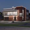 Отделку практически всего здания задумали выполнить из фасадных кассет под кирпич, первого этажа и задней стены — из фальцевых панелей. К той же стене будет примыкать наружная эвакуационная лестница.