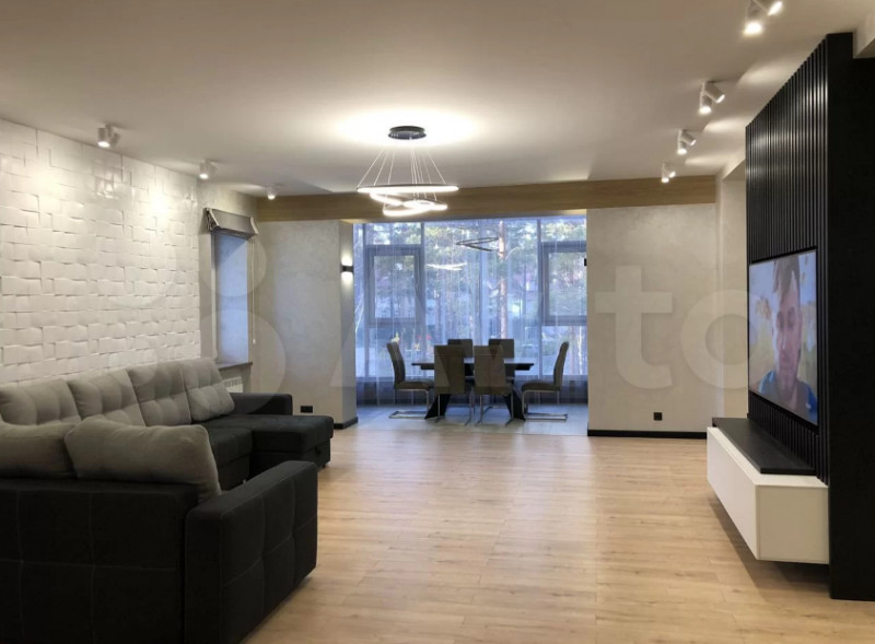 Квартира располагается в доме с закрытой охраняемой территорией, имеется консьерж. Дом находится в непосредственной близости от леса – на него выходят окна и открывается живописный вид.