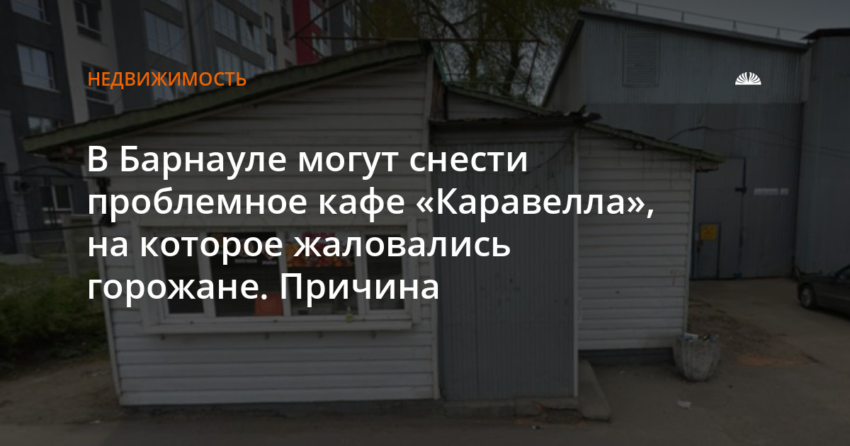 Летом Комитет по строительству, архитектуре и развитию Барнаула обратился в арбитражный суд региона с иском к «СГК-Алтай» и Елене Смирновой — потребовали снести кафе «Каравелла» на ул. Северо-Западная, 17. Об этом сообщает «Банкфакс».