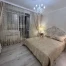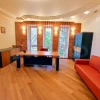 Преимущественно помещения выполнили в желтом цвете, хотя некоторые детали — кухонный гарнитур оранжевого оттенка, а вот в ванне есть ярко-красные вставки на потолке и на настенной плитке. Кроме того, ванная весьма большая и просторная. Также есть отдельный санузел. Мебель и техника остаются.