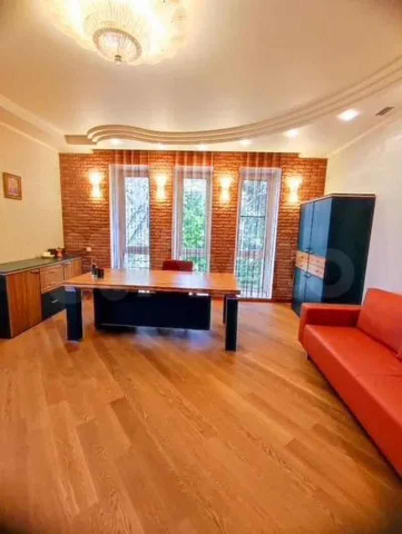 «Эксклюзивная квартира в клубном районе» расположена на втором этаже. Планировка просторная, кухня 17 кв. м, гостиная 43 кв. м, кабинет, две спальни 22 кв.м и 19 кв. м. В квартире дизайнерский ремонт.