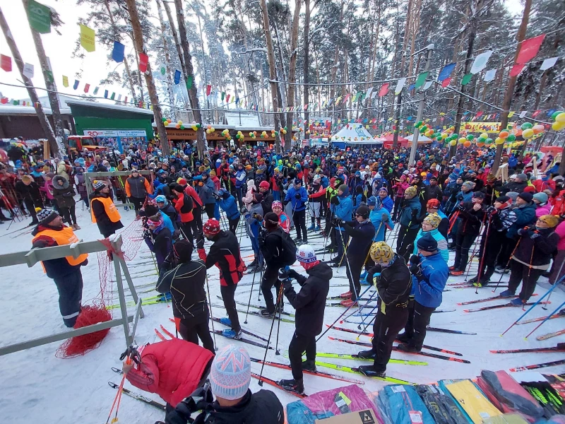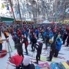 Спортсмены и любители сначала готовились на старте к забегу на лыжах, а затем начали бороться за победу.