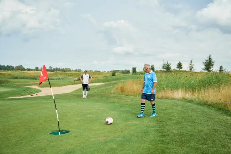 Но алтайские умельцы не первый год развивают эти дисциплины разом, называя футгольфом. Правила и механика игры предельно просты – первым отправить ногой футбольный мяч в увеличенную лунку.