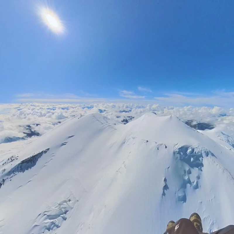 Небо перед стартом оказалось затянуто облаками на 80%. Стартовал Михеев с высоты 2,3 тыс. м, а когда заметил небольшой просвет, пилот отважился подняться выше. Взлет состоялся в 9:30, подъем занял полчаса. На всем маршруте перед глазами открывалась впечатляющая панорама горных вершин.