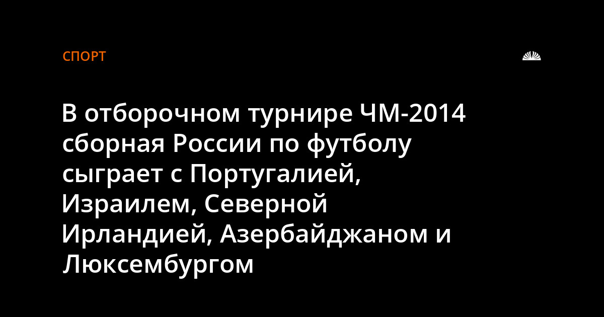 В Рио-да-Жанейро состоялась жеребьёвка отборочного турнира чемпионата мира-2014 в европейской зоне, сборная России узнала своих соперников по этому турниру. Нам достались Португалия, Израиль, Северная Ирландия, Азербайджан и Люксембург.