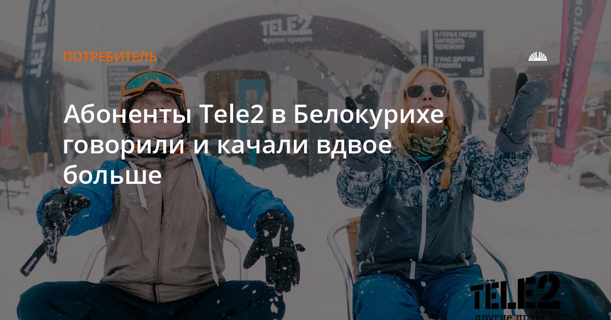 В высокий сезон – с декабря 2017 по март 2017 года – количество абонентов Tele2, использовавших услуги связи на курорте, выросло на 34% по сравнению с аналогичным периодом прошлого года. Отдыхая в Белокурихе, абоненты проговорили почти миллион минут – вдвое больше, чем в прошлом году. Также абоненты активно пользовались мобильным интернетом –потребление интернет-трафика увеличилось почти в два раза. Суммарный объем переданных данных превысил 12 Тб.