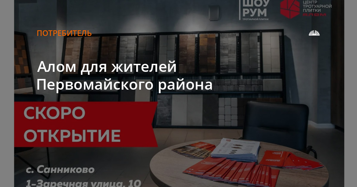 Теперь приобрести тротуарную плитку Алом по цене завода-производителя можно не только в Барнауле, в ТЦ Galaxy, но и в Санниково, по адресу 1-я Заречная улица, строение 10.
