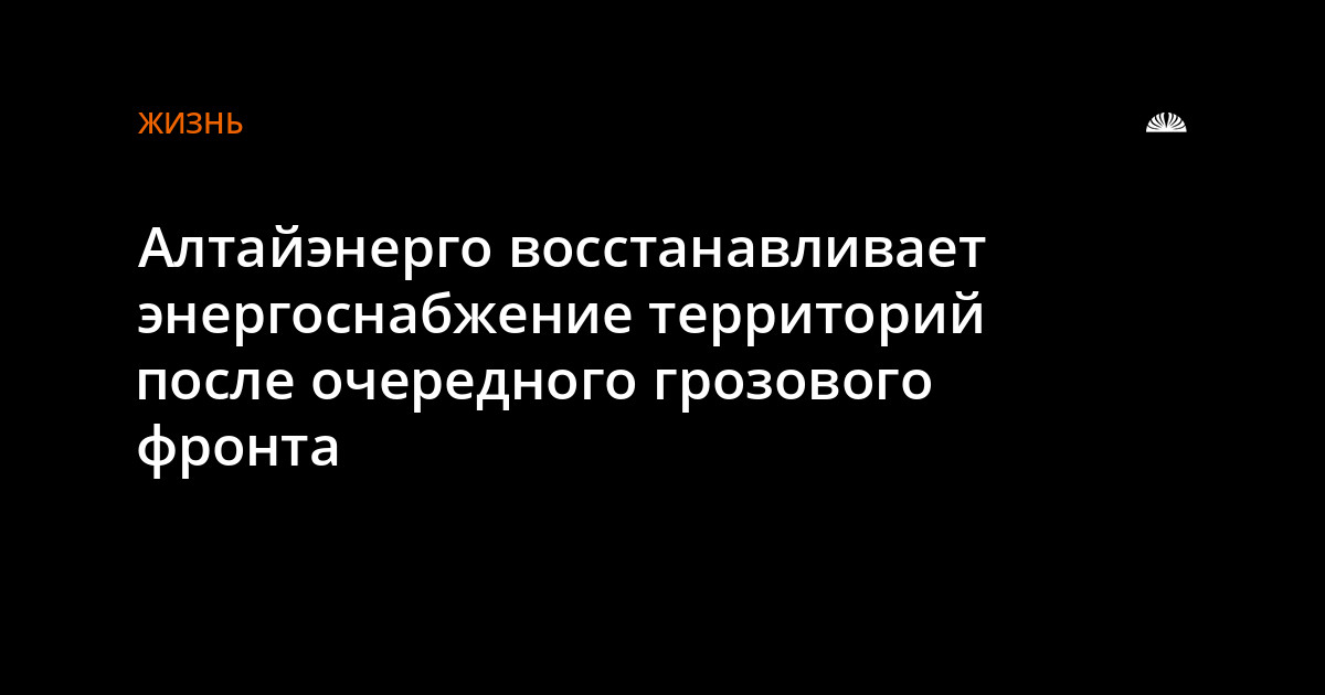 Подача электроэнергии во все населенные пункты, пострадавшие от грозового шторма будет восстановлена в кратчайшие сроки. На энергообъектах работают 12 бригад "Алтайэнерго" в составе 32-х человек, и 12 единиц спецтехники.