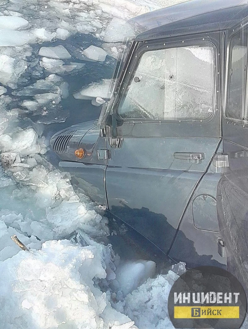 Фото и видео с места событий около села Соусканиха опубликовали в группе "Инцидент Бийск" 17 февраля. На кадрах видна "спасательная операция": под колеса внедорожника подложили доски и вытянули его из полыньи КАМАЗом.