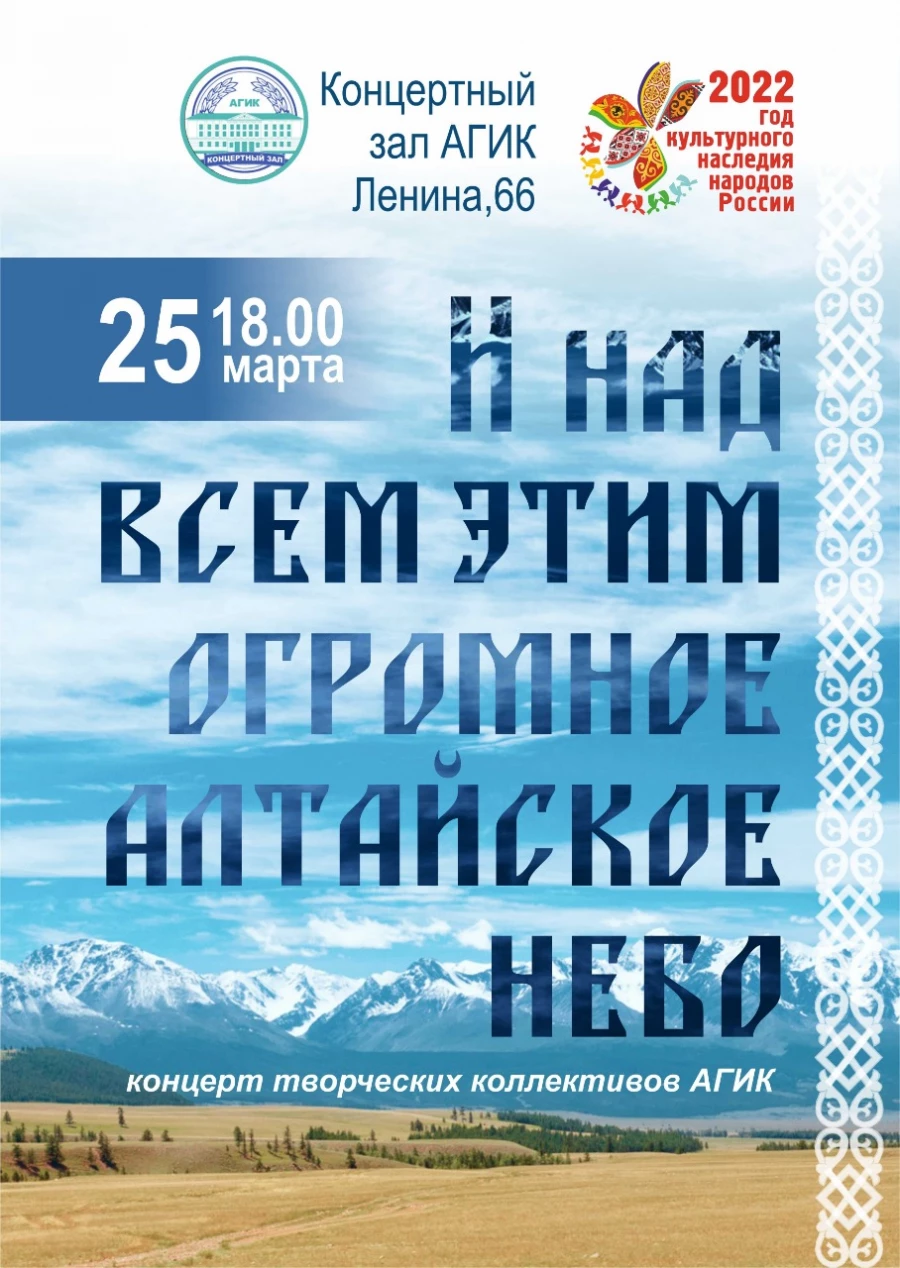 Начало концерта 25 марта 2022 года в 18:00 в концертном зале АГИК (пр. Ленина, 66)