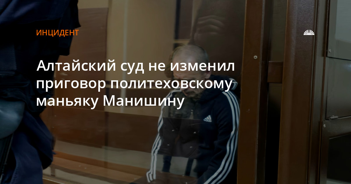 Заседание состоялось 27 февраля 2026 года в Алтайском краевом суде. В ходе слушания суд рассмотрел жалобы адвоката и родственников одной из жертв на приговор Калманского районного суда Алтайского края от 1 октября 2025 года. В соответствии с ним по совокупности совершенных преступлений Манишину было назначено 25 лет лишения свободы.