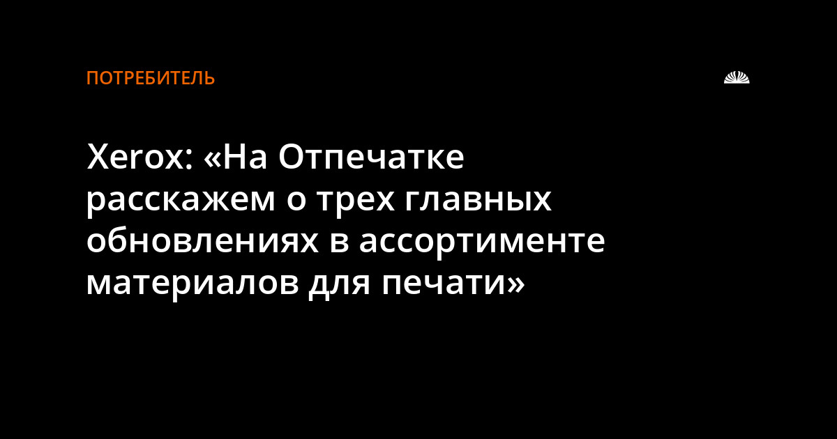 — В этом году компания Xerox осуществила три важных обновления ассортимента специальных материалов для цветной лазерной печати: запуск новой линейки синтетической бумаги Revolution NeverTear, расширение ассортимента текстурированной бумаги Xerox Embossed paper, и Xerox Colour Impressions в удлиненном формате 660x330 мм.