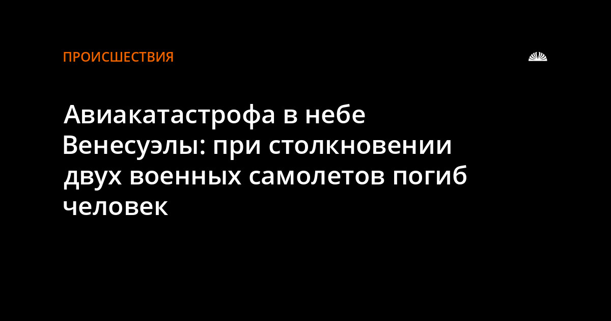Агентство France-Presse со ссылкой на власти Венесуэлы сообщает в пятницу, 23 ноября, о том, что во время демонстрационных полетов столкнулись два военных самолета. Пилоты одного из них успешно катапультировались, пилот второго самолета погиб, уводя падающую машину от населенного пункта.