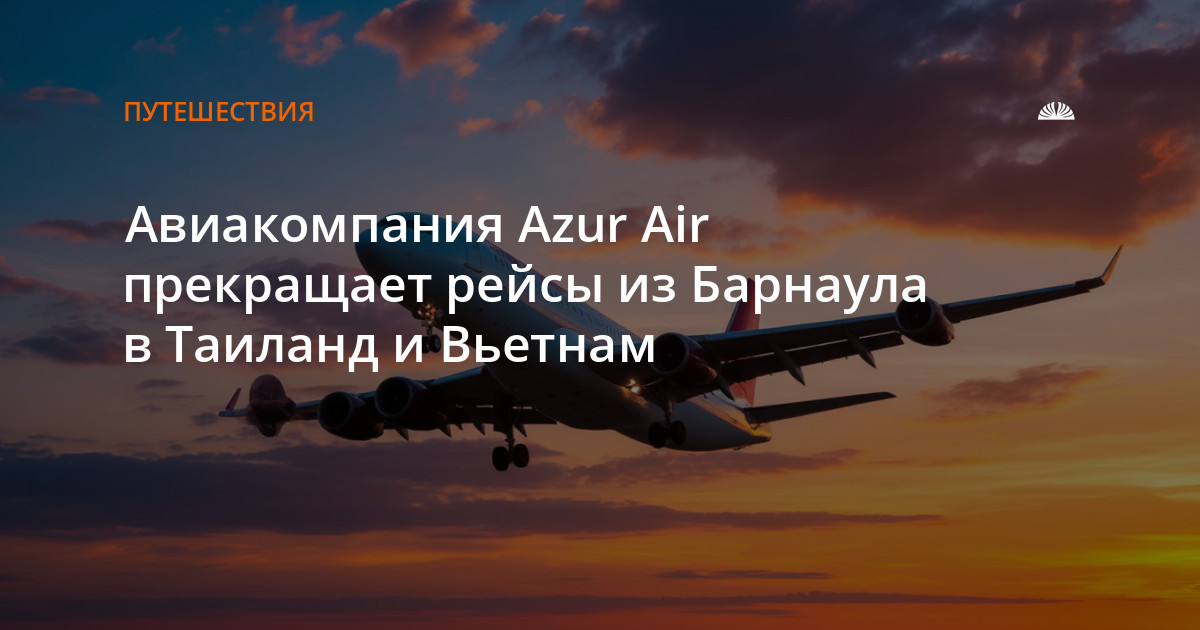 Авиакомпания Azur Air прекращает рейсы из Барнаула в Таиланд и Вьетнам