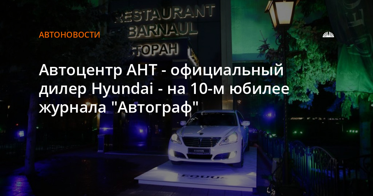 Журнал "Афтограф" отметил свой десятилетний юбилей. Мероприятие прошло 29 октября в ресторане "Барнаул", генеральным спонсором которого выступил Автоцентр АНТ - официальный дилер Hyundai в Алтайском крае.