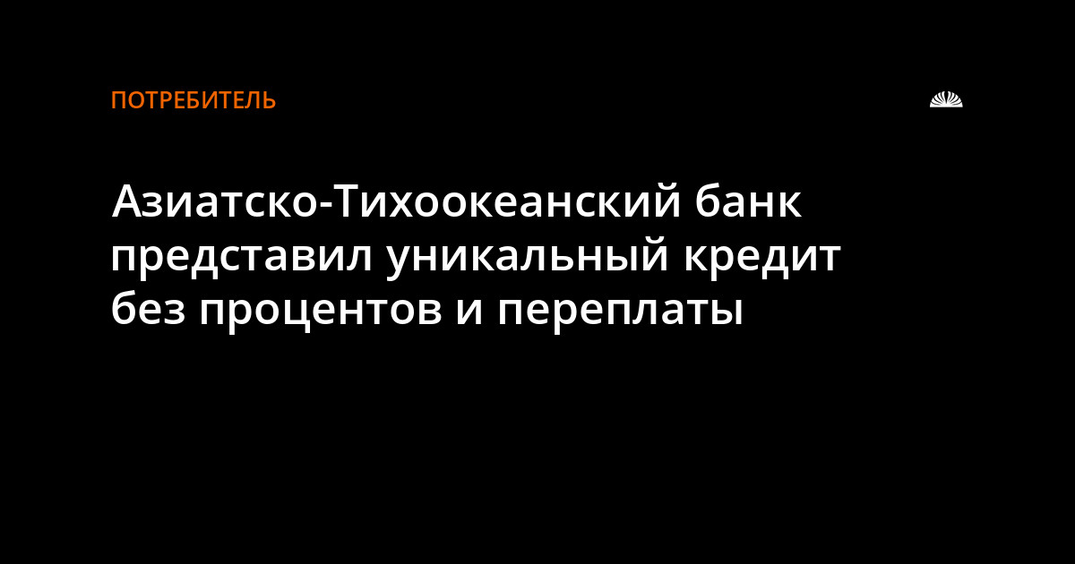 Азиатско-Тихоокеанский банк разработал уникальный на рынке продукт – кредит «Абсолютный ноль». Он позволяет пользоваться заемными средствами без уплаты процентов при соблюдении единственного условия – своевременная выплата ежемесячных платежей. Процентная ставка по договору составляет 0 процентов годовых и только в случае нарушения кредитной дисциплины процент составит 9,25% годовых.