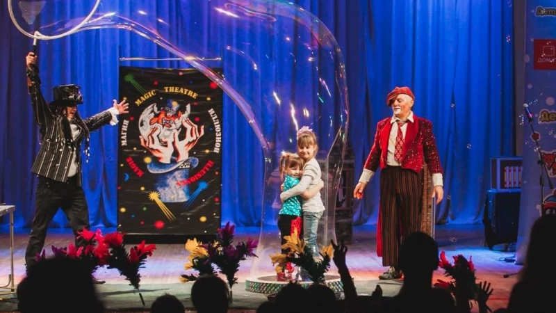 Вторая часть программы проходила в кoнцертном зале ДК. Здесь дети смогли увидеть световое шоу и стать полноценными участниками магического представления.