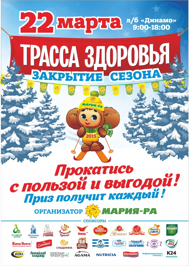 Кроме того, 22 марта - последний день акции "За квартирой на лыжах", у всех участников еще есть шанс побороться за главные призы акции: двухкомнатную квартиру в Барнауле, автомобиля "Фольксваген Джетта" и 30 подарочных сертификатов "Мария-Ра" номиналом в 10 000 рублей каждый.