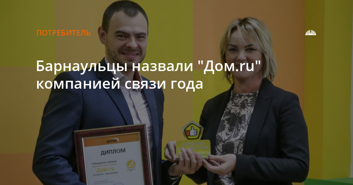 Дом.ru работает в Барнауле с 2012 года и является лидером по количеству обслуживаемых пользователей интернета и платного ТВ. К сети "Дом.ru" подключено более 200 тысяч квартир, или почти 70% от их общего числа. Горожане могут смотреть 218 каналов цифрового телевидения и выходить в интернет на скорости до 200 мбит/с. Оператор организовал в городе сеть общедоступного Wi-Fi, которая насчитывает более 200 точек, в том числе в таких популярных местах отдыха, как ТРЦ "Арена", ТРЦ "Праздничный", кинотеатр "Pioneer cinema" и т.д.