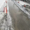 Но вот весной этот предмет продажи создал проблемы для всех, кто ходит по тротуару на работу, остановку, поликлинику. Дело в том, что сугроб начал активно таять. И вся эта вода хлынула на тротуар. Глубина — выше щиколоток. Пройтись в марте по снежной луже и не заболеть — настоящий экстрим.