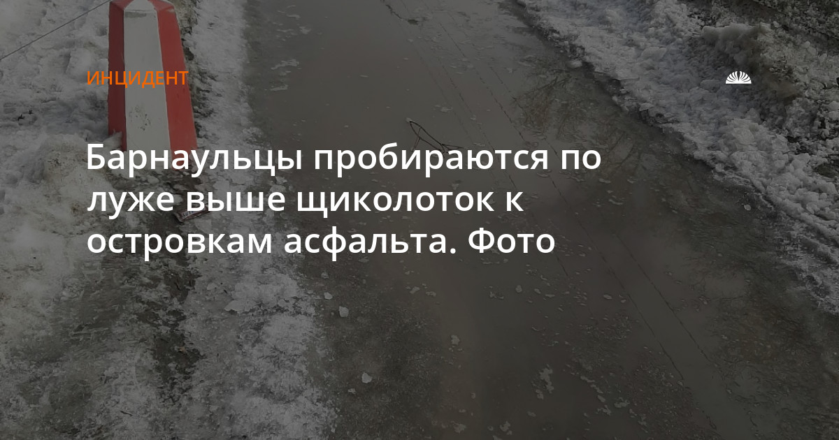 Барнаульцы пробираются по луже выше щиколоток к островкам асфальта. Фото