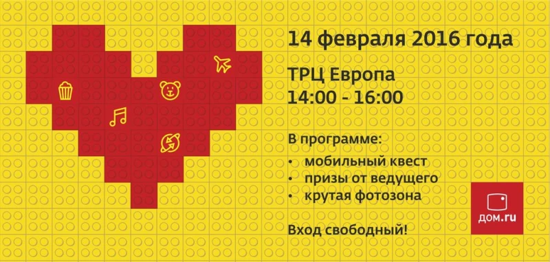 С 14.00 до 16.00 все барнаульцы смогут совершенно бесплатно пройти мобильный реалити-квест и выиграть призы в развлекательной программе от ведущего. Также у всех желающих будет возможность сделать яркие фото. А те, кто выложит их в "Инстаграм", смогут получить подарок от "Дом.ru" и сразу же забрать снимок из инстапринтера.
