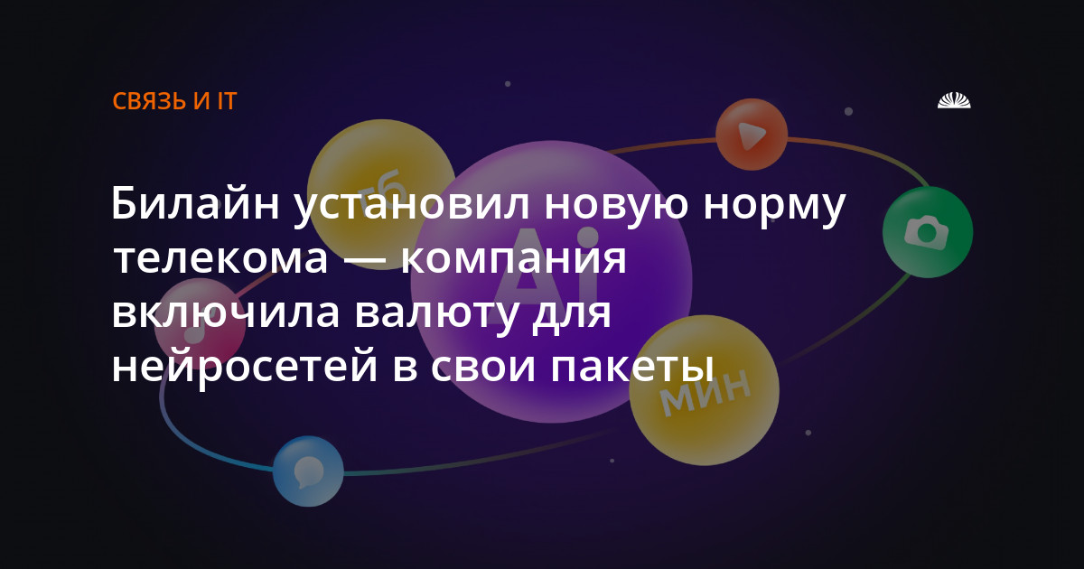Телеком начинал свою историю с продажи минут для звонков. Затем операторы стали предлагать гигабайты для доступа в интернет. Сегодня Билайн первым из операторов сделал следующий шаг и включил в своё предложение ИИ-токены для доступа к нейросетям. Фактически ИИ-токены теперь являются четвёртой полноценной валютой в подписке Bee (Би) наряду с пакетами минут, смс и ГБ. Нейросети уже перестали быть нишевой технологией и становятся частью повседневной жизни — Билайн отвечает на этот тренд и предлагает клиентам новую ценность удобным и бесшовным способом. Для клиента это означает простую вещь: доступ к нейросетям становится такой же естественной частью тарифного предложения, как минуты и гигабайты. Мы встроили ИИ-токены в подписку Bee (Би), наше самое популярное и масштабное предложение, чтобы доступ к нейросетям получило максимальное число клиентов. Мы считаем, что такой подход становится новой нормой для отечественного и мирового телекома. И примечательно, что Билайн, как прогрессивная и технологичная компания, первым представляет эту инновацию на российском рынке. В наших планах включить начисление токенов во все наши тарифные предложения, — рассказал гендиректор Билайна Сергей Анохин.