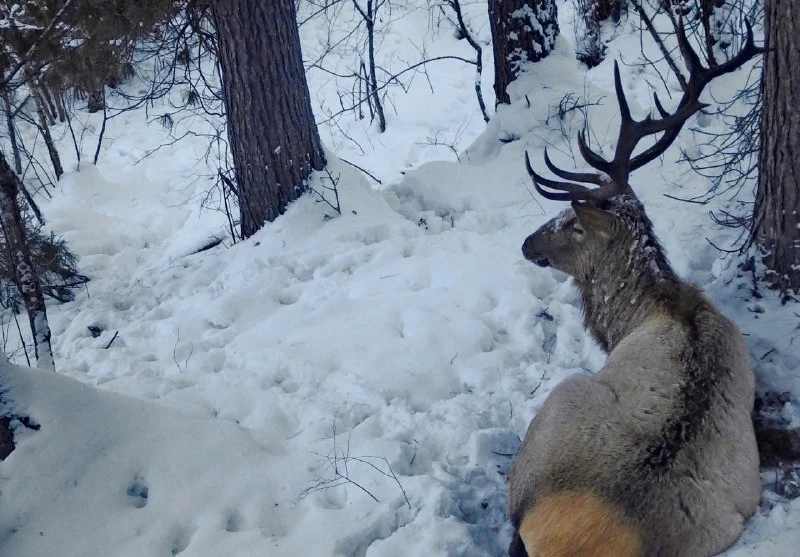 Благородного оленя на зимнем отдыхе перед «охотой» показали на Алтае. «Ленивые» фото