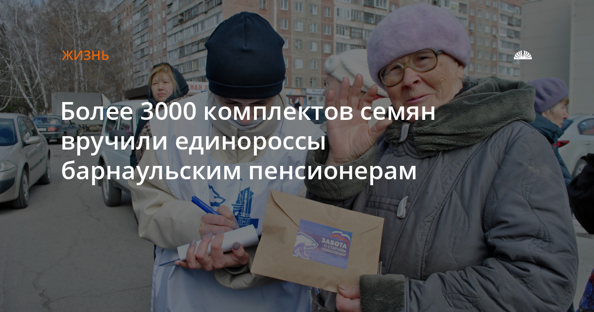 В начале апреля барнаульские единороссы дали старт акции «Добрый сад», в рамках которой каждые выходные волонтёры партии выходят на площади и скверы и вручают пенсионерам семена овощных культур.