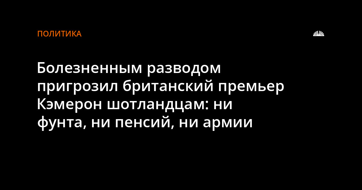 Ранее Кэмерон действовал "пряником", он призвал шотландцев на предстоящем референдуме проголосовать против отделения от Соединенного Королевства, пообещав автономии больше прав в случае, если она останется в составе Великобритании.
