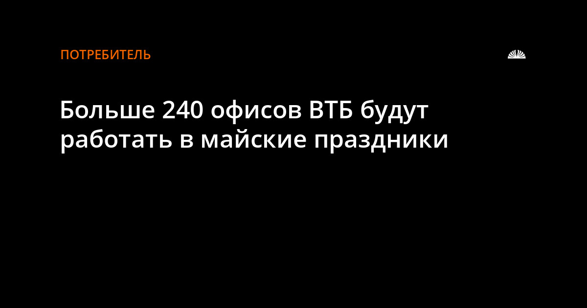 В период майских праздников для клиентов физических лиц будут работать 243 дежурных офиса ВТБ: из них 88 в Московском регионе, 47 – в Санкт-Петербурге и Ленинградской области, 108 – в других регионах страны.