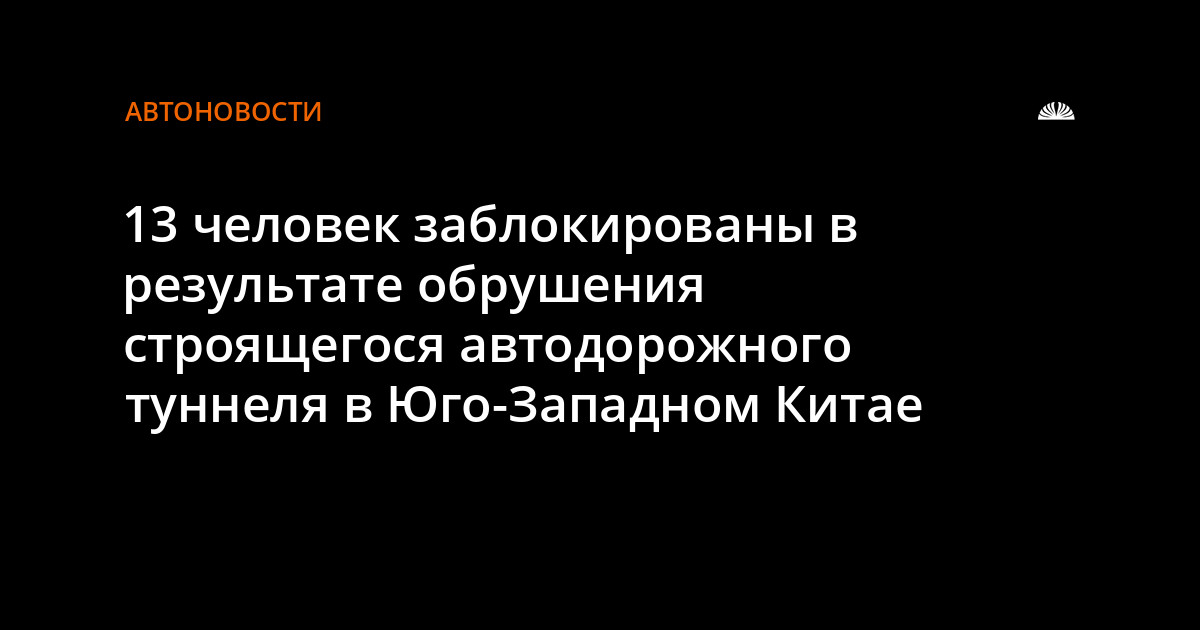 13 человек оказались отрезанными от внешнего мира в результате проседания породы в строящемся автодорожном туннеле в Юго-Западном Китае.