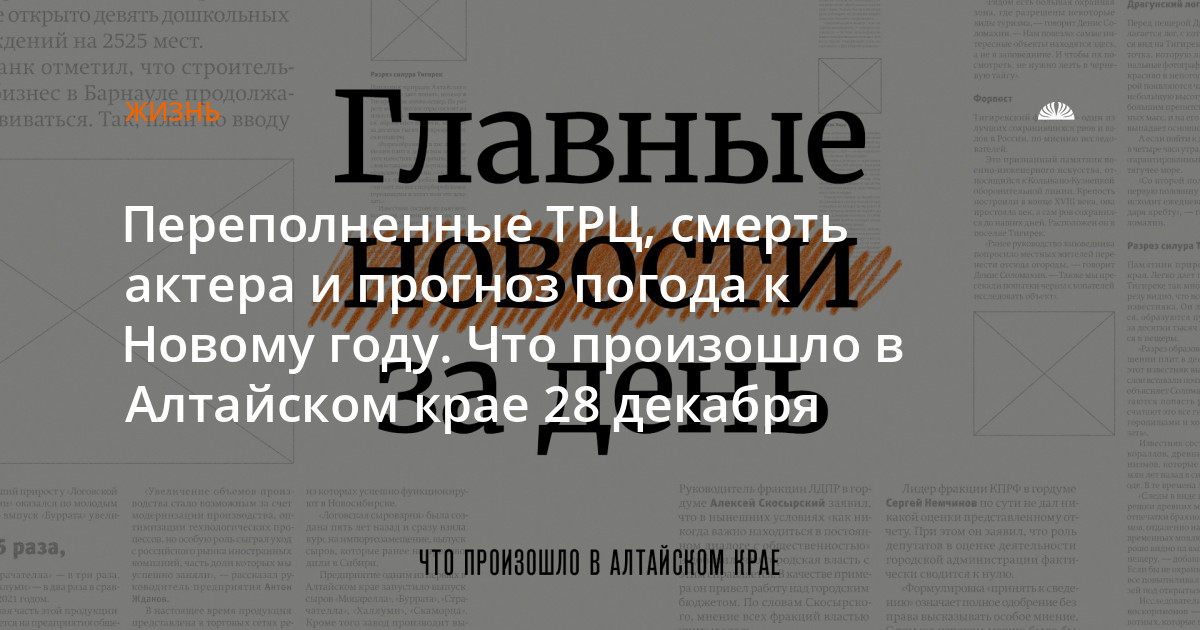 - Синоптики сделали прогноз погоды на последние дни перед Новым годом. Жители Алтайского края могут узнать, чего ждать 29, 30 и 31 декабря.