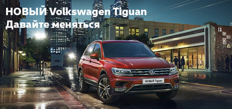 * Указанное преимущество достигается при покупке нового автомобиля Volkswagen Tiguan 2017 года выпуска с бензиновыми двигателями (2WD) мощностью 125 л.с. или 150 л.с. в период с 01.09.2017 по 30.09.2017 за счет предоставления официальным дилером Volkswagen скидки за сдачу предыдущего автомобиля в зачет стоимости нового (трейд-ин). Предложение действительно при условии, что сдаваемый в трейд-ин автомобиль был в собственности покупателя не менее 6 месяцев к моменту сдачи. Предложение ограничено. В акции принимают участие не все дилерские центры. Подробности узнавайте в отделах продаж официальных дилеров Volkswagen.