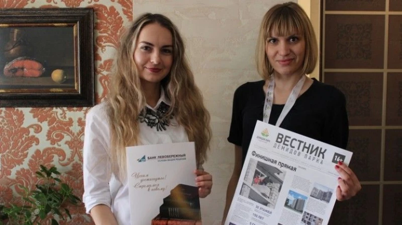 Ольга также презентовала на встрече свежий выпуск газеты "Вестник Демидов Парка", где освещены этапы строительства новостройки.