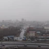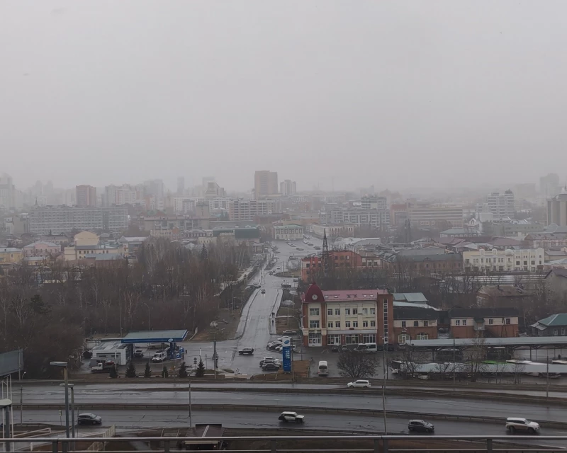 С высоты парка можно увидеть, что Барнаула будто в дымке, а вокруг слякоть и грязь.