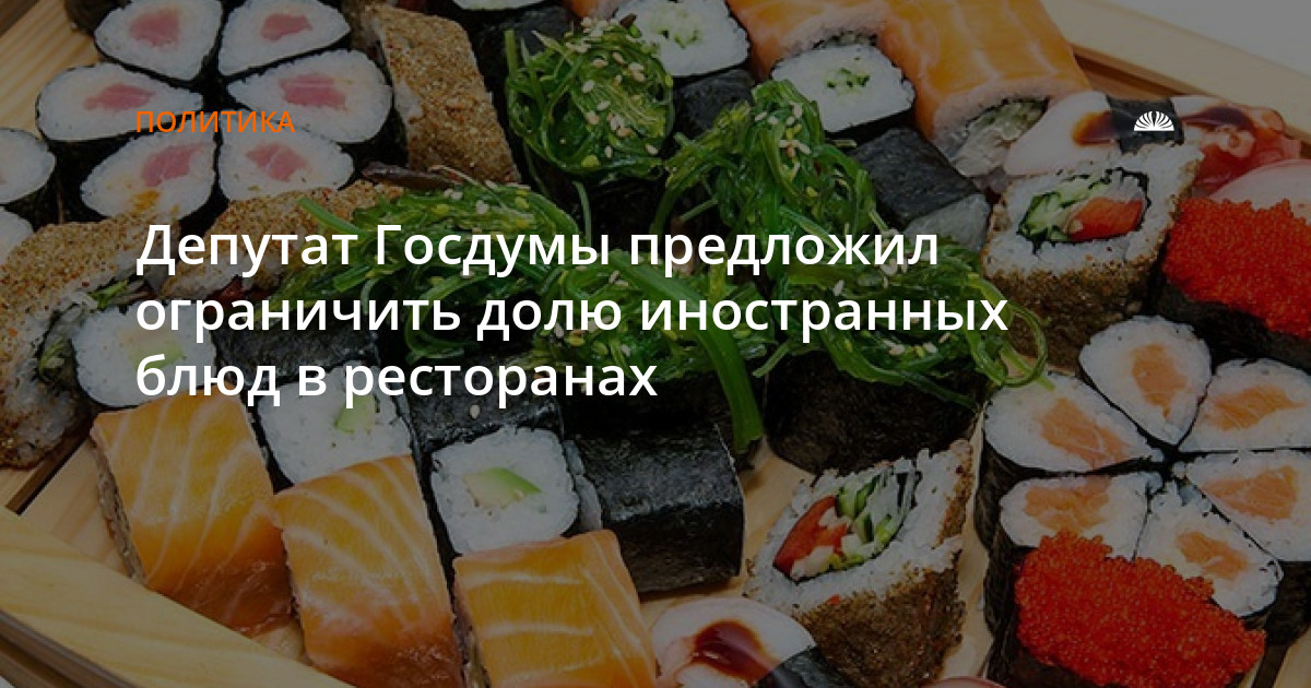 В Госдуму внесен на рассмотрение законопроект о введении для ресторанов лимита на иностранные блюда. Согласно этому законопроекту, даже если у заведения нет национальной специализации, в меню должно быть не менее половины блюд традиционной кухни.